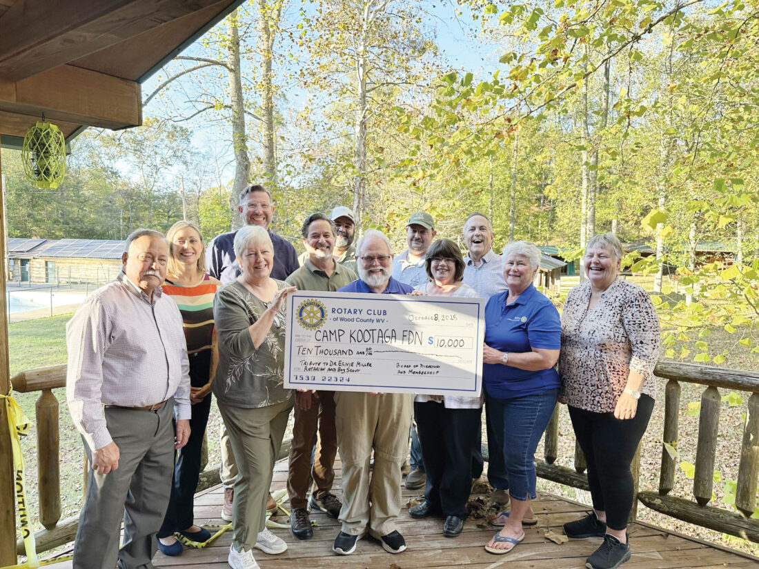 Wood County Rotary Club on Tuesday, Oct. 14, donated $10,000 to Camp Kootaga in Wood County to the Camp Kootaga Foundation, which purchased the scout camp earlier this year. The funds were given in honor Dr. Ernie Miller, president of Wood County Rotary Club, and his many years of service to Rotary and the Boy Scouts of America. The foundation will use the money for upgrades and maintenance of the facilities. (Photo Provided)