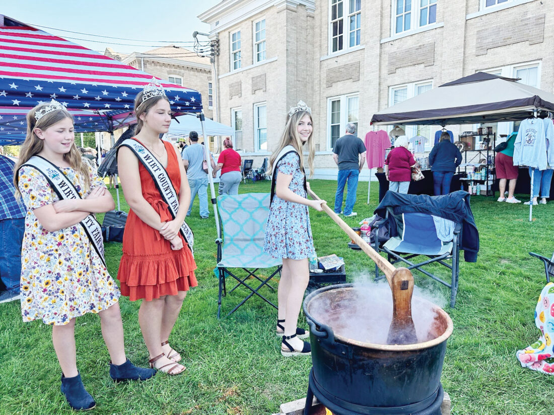- Wirt County Fair royalty members stir apple butter made by Cub Scout Pack 30 during the 2024 Wirt County Pioneer Days. (Photo Provided)