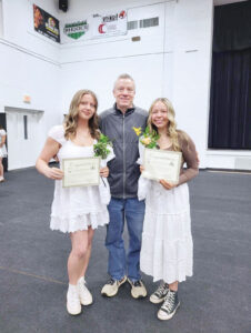 - Bella Morrison, right; older sister Elizabeth; and dad Carlos during a National Honor Society induction ceremony. (Photo Provided)