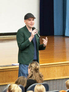 - Dr. Kerry Magro, autistic professional speaker, author and autism consultant, speaks to students in grades two through six from six Wood County Schools on Wednesday at Blennerhassett Middle School during the district’s Voices of Inclusion Speaker Series. (Photo Provided)