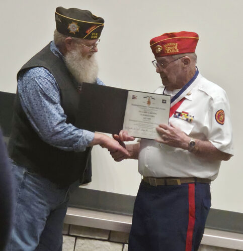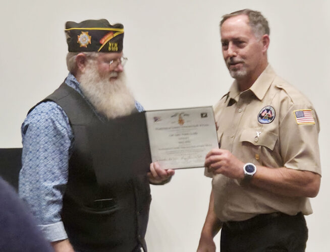 Eric Clark, right, was inducted into the Washington County Veterans Hall of Fame at the beginning of November. (Photo by Gwen Sour)