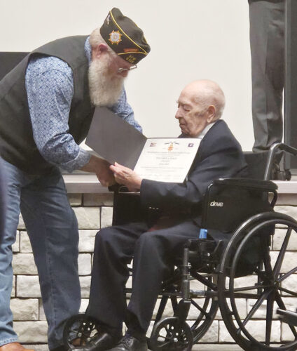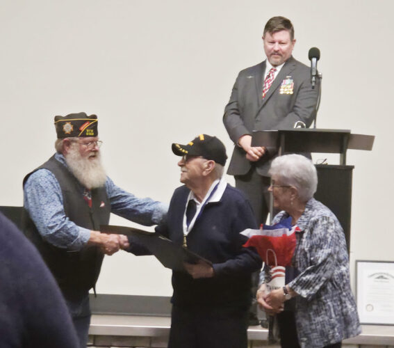Larry Britton, right, received his induction to the Washington County Veterans Hall of Fame on Nov. 1. (Photo by Gwen Sour)