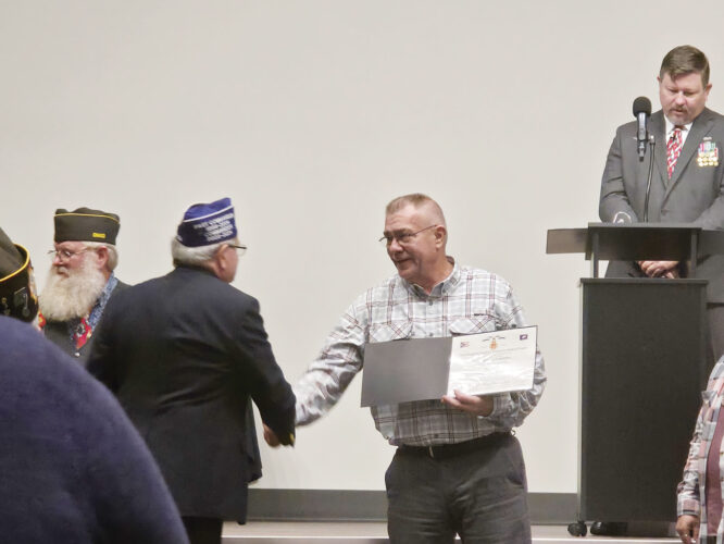 Kreig Worstell accepted his induction to the Washington County Veterans Hall of Fame on Nov. 1 at the Tower Event and Conference Center in Marietta. (Photo by Gwen Sour)