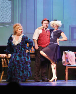 From left, Missy Arnold (Miss Hannigan), Seth Fearnow (Rooster) and Morgan Stubbe-Fearnow (Lilly St. Regis) perform in “Annie” at the Actors Guild of Parkersburg. (Photo Provided)