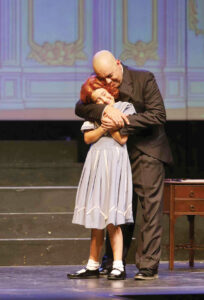 From left, Mia Higgins and Tom Lodato play Annie and Warbucks in the Actors Guild of Parkersburg’s production of “Annie.” (Photo Provided)