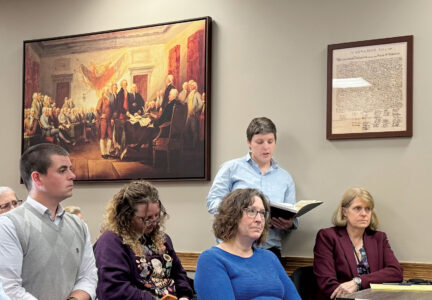 From left, Seth Fearnow, Missy Arnold, Mia Higgins and Jamie Meckley perform in “Annie” at the Actors Guild of Parkersburg. (Photo Provided)