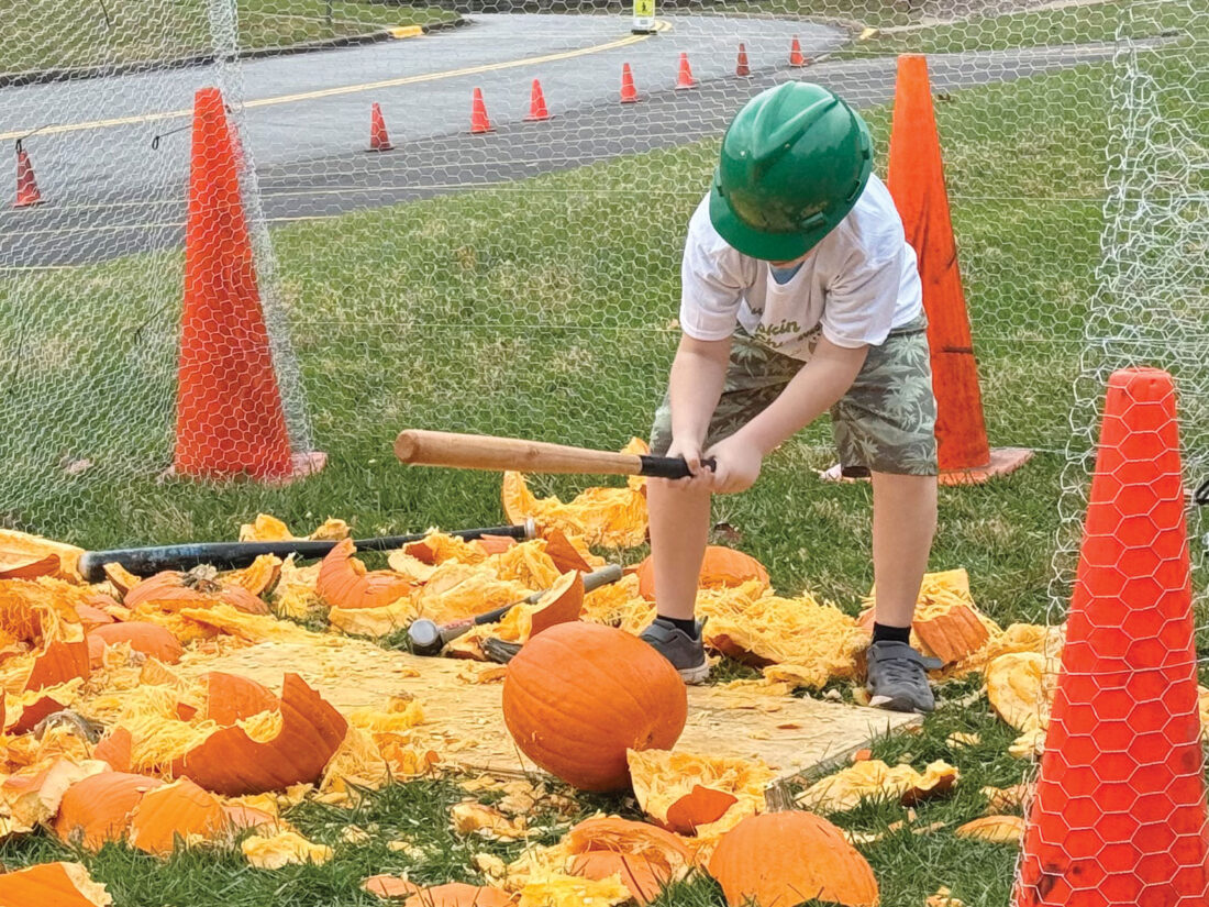 - A boy taking a swing at a pumpkin in the “rage room” at Washington State College of Ohio during Pumpkin Chuckin’ on Saturday. (Photo by Amber Phipps)
