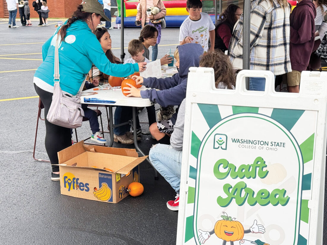 - Families painting pumpkins in the craft area at the third annual Pumpkin Chuckin’ at the Washington State College of Ohio on Saturday. (Photo by Amber Phipps)