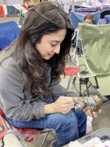 Abigail G. of Print 3-D Universe of Ripley paints a piece during the Marietta Monster Mash Sunday at the Washington County Fairgrounds in Marietta. (Photo by Brett Dunlap)