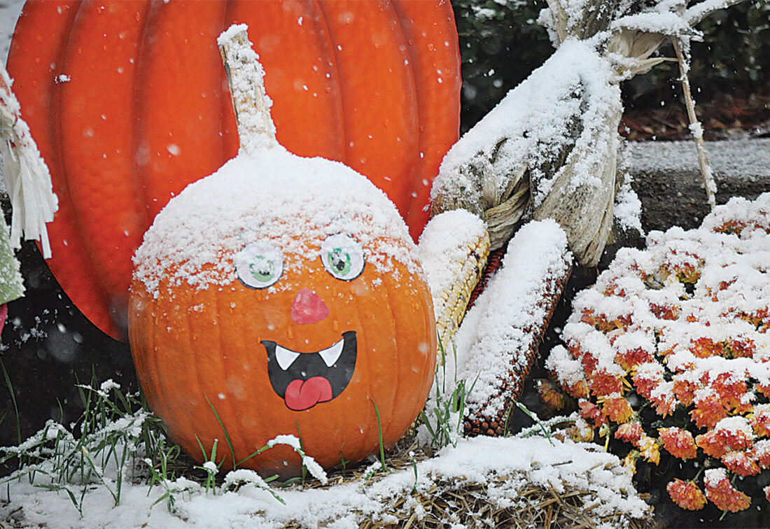 A jack-o-lantern left over from Halloween appears to react to a cap made from snow after a light snowfall Monday morning in Watertown near Ohio 339. If you have a recent photo that showcases the beauty of the Mid-Ohio Valley, submit it to Art Smith at asmith@newsandsentinel.com for possible inclusion on this page. See more photos at instagram.com/parkersburg.news.and.sentinel. (Photo by Art Smith)
