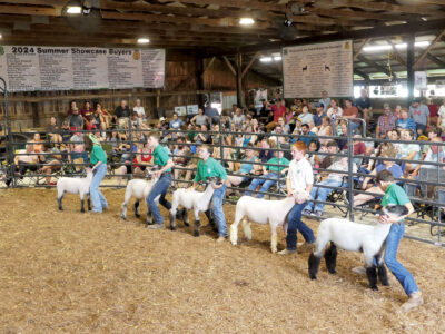 - Abigail Gibson, Mason Lewis, Zeke Dent, Justin Donato, and Abram Dent at the Lamb Show at the Wood County 4-H & FFA Summer Showcase. (Photo Provided)