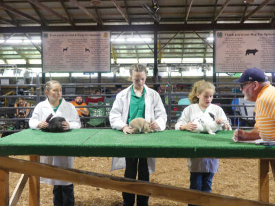 Morgan Smith, Lunden Schneider, and Emmy Ingold at the Rabbit Show Wood County 4-H & FFA Summer Showcase. (Photo Provided)
