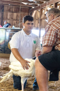 - Collin Lewis gets feedback from the judge at the Wood County 4-H & FFA Summer Showcase. (Photo Provided)