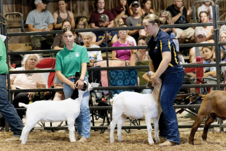- Ady Matheny and Lorelei Dent during the 2025 Goat Show at the Wood County 4-H & FFA Summer Showcase. (Photo Provided)