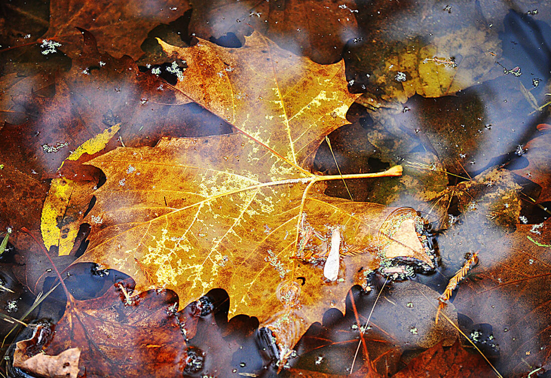 A sycamore leaf sits just below the surface of one of the ponds in the McDonough Wildlife Refuge in Vienna recently. Trees at the park are rapidly losing their leaves. If you have a recent photo that showcases the beauty of the Mid-Ohio Valley, submit it to Art Smith at asmith@newsandsentinel.com for possible inclusion on this page. See more photos at instagram.com/parkersburg.news.and.sentinel. (Photo by Art Smith)