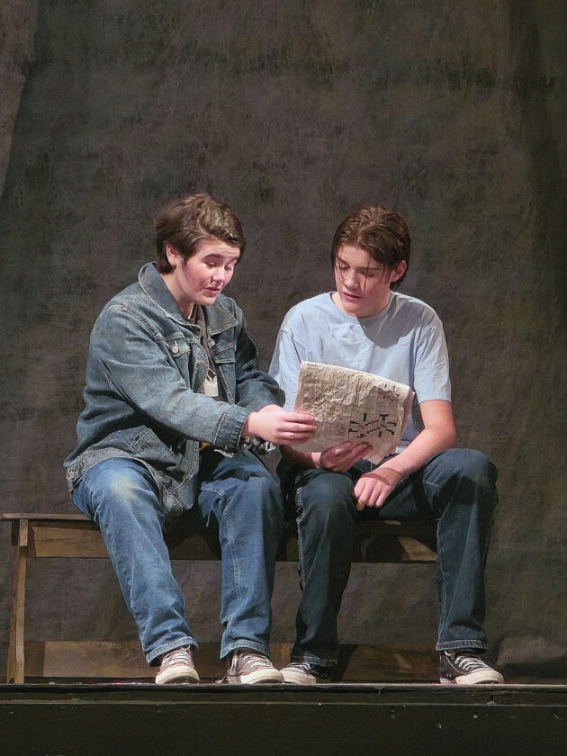 - From left, Ace Crock as Two Bit and Max Taylor as Ponyboy rehearse a scene in “The Outsiders” that opens at 7 p.m. Friday at the Mid-Ohio Valley Players Theatre in Marietta. Tickets to the Youth Players production are $10. (Photo Provided)