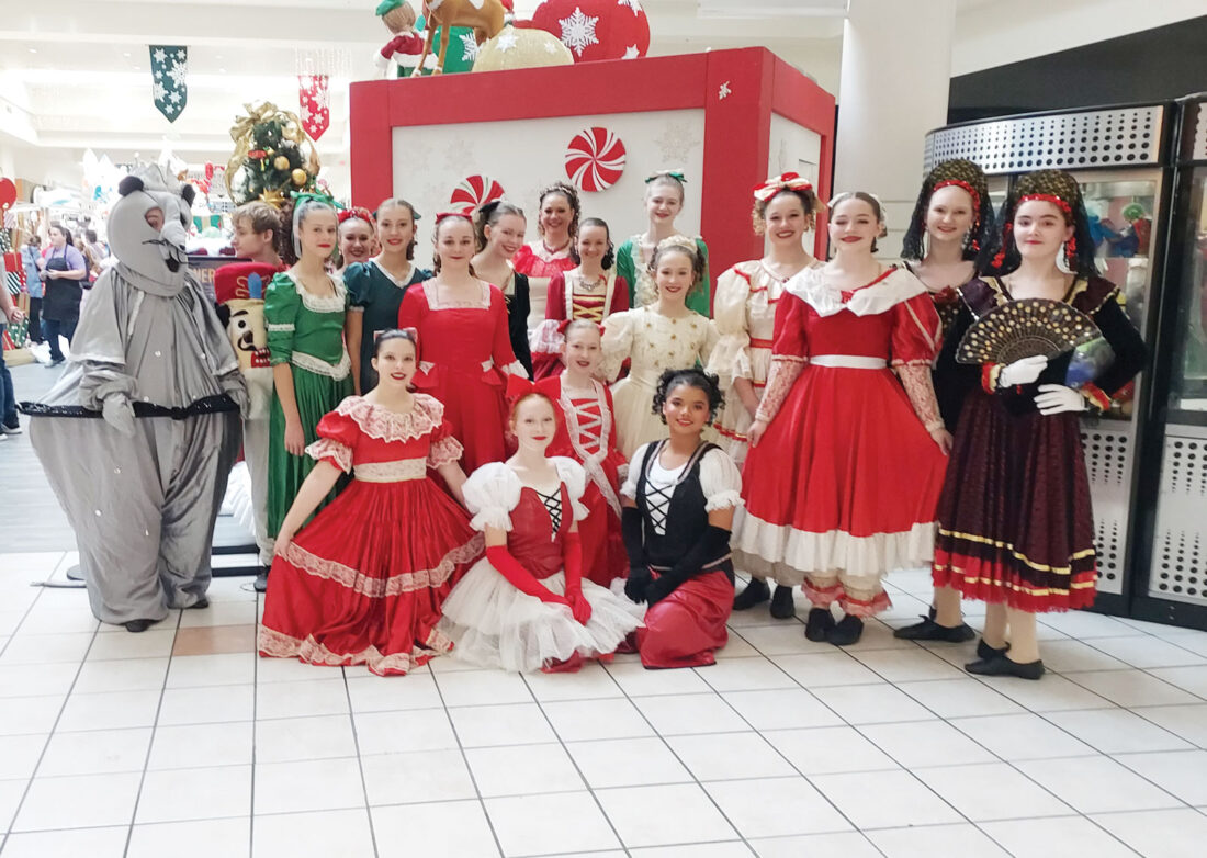 Members of “The Nutcracker” cast recently welcomed Santa to the Grand Central Mall and will be performing in upcoming performances. Pictured are from left back row, Mouse Queen, Rebecca Segrest-Parlato, Nutcracker Prince, Keegan Marsh, Party Guests, Caolinn Craig, Sylvia Smith, Meggan Starcher, Tessa Barker, Violet Bevins, Jolene Troisi, Emily Taylor, Lily Parsons, Helena Smith, Meredith Craig, Emma Holt. Front row from left, Millicent Fleak, Alexis Wilcox. Featured performers as the Mechanical Dolls, front from left, Amelia Auville, Danae Tibbs and featured performers as the Spanish Dancers, right side are Sarah Harvey and Bethany Truax. (Photo Provided)