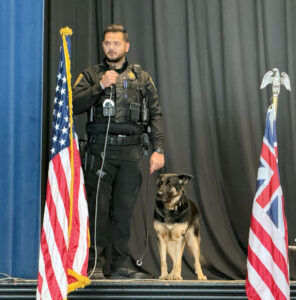 - Sgt. Johnathan Tucker speaks about his experience in the U.S. Marine Corps. He is now a deputy sheriff with a dual-purpose K9 at the Washington County Sheriff’s Office. (Photo by Amber Phipps)