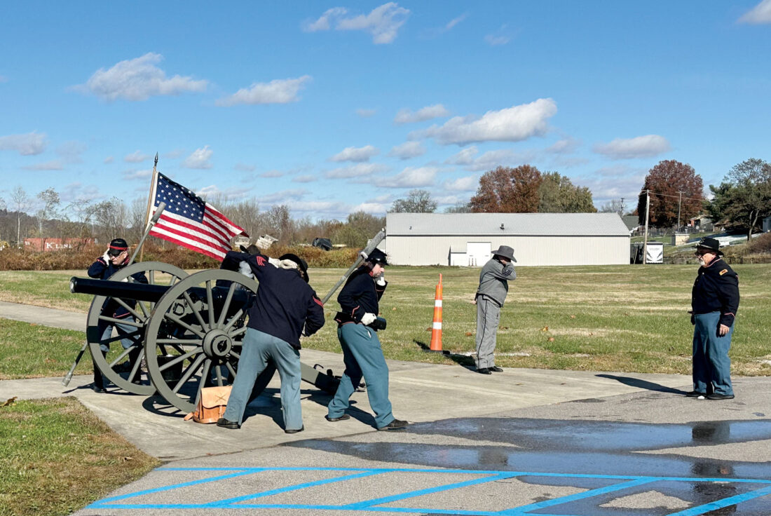 - Carlin’s Battery D 1st WV Light Artillery fires its ceremonial cannon at Vienna’s Veterans Day Celebration at Spencer’s Landing. (Photo Provided)