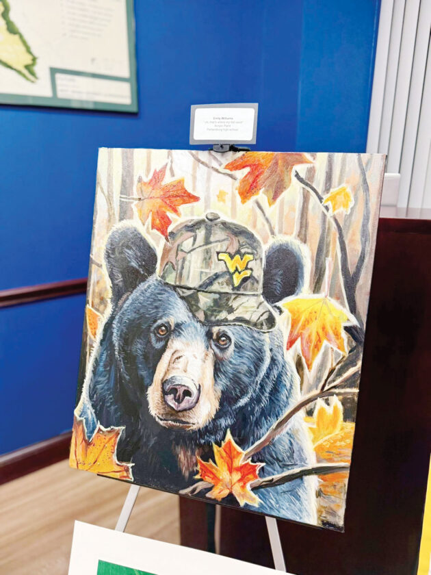 The show featured submissions from students representing schools from across the state. Awards were presented across multiple categories with Emily Williams of Parkersburg High School receiving Best in Show for her whimsical piece titled “oh, that’s where my hat went.” The piece is a bear wearing a West Virginia University cap.