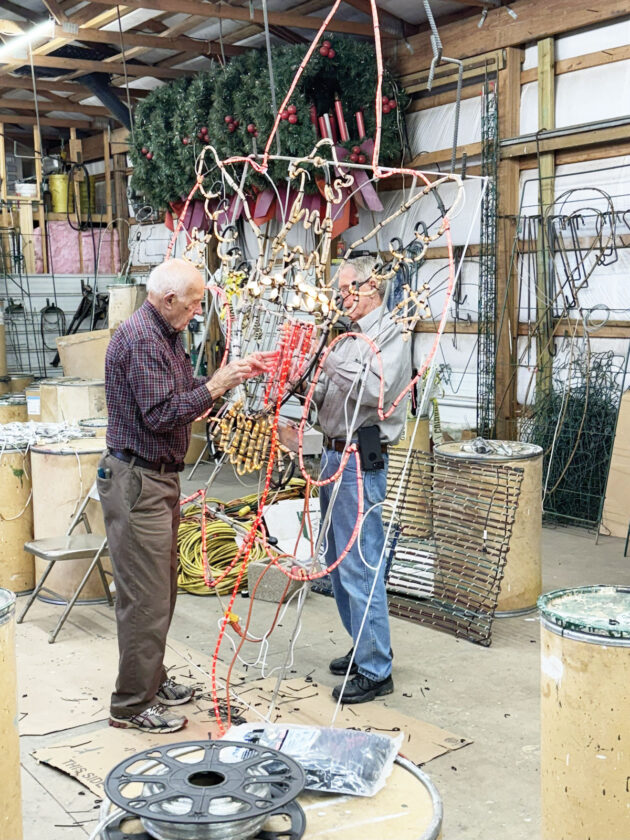 - A couple of volunteers put together a holiday lighting display that will be displayed in Belpre during the upcoming holiday season. Volunteers will put up about 140 lighting displays around the city. (Photo Provided)