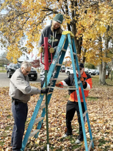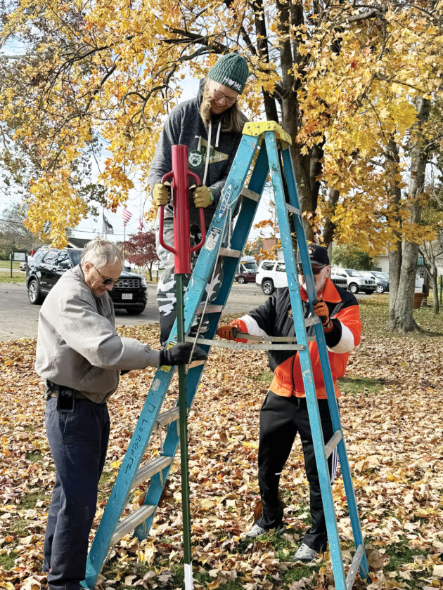- Volunteers put up holiday lighting displays at Howes Grove Park in Belpre for the upcoming Belpre Holiday Lights. Volunteers will put out about 140 lighting displays around the city at Civitan Park, Howes Grove Park and around the town. (Photo Provided)