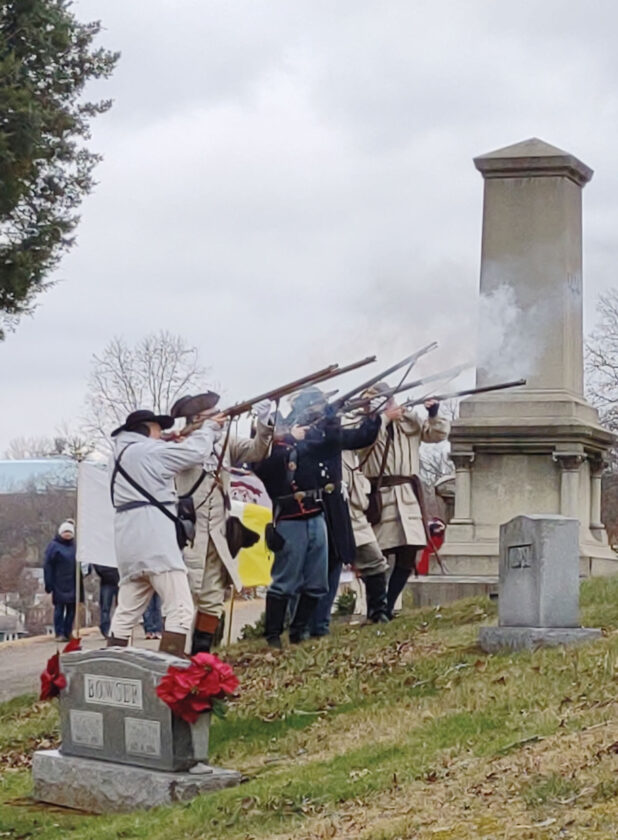 - The color guard of the Capt James Neal chapter of the Sons of the American Revolution and the 1st Ohio Light Artillery, Battery K, participated in National Wreath day on Saturday at Mt. Olivet Cemetery. (Photo Provided)