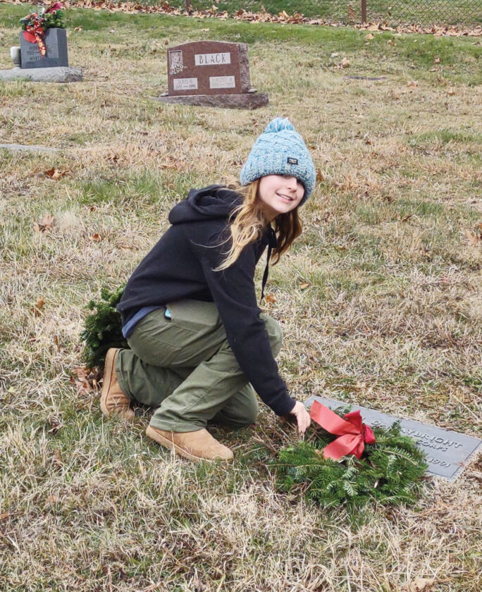 - Madison Waybright with 4H helped lay wreaths on National Wreath Day on Saturday at Mt. Olivet Cemetery. (Photo Provided)