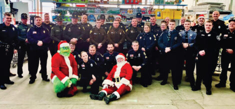 Law enforcement officers and a couple of guests pose for a group photo at the Walmart in Parkersburg during the Fraternal Order of Police Lodge 79 Shop with a Cop event on Sunday. According to FOP President R.S. Black, 101 kids participated, shopping with police officers for toys, clothes and any other items they might need at the Walmarts in Parkersburg and Vienna. Donations for the program come from local businesses and members of the community, Black said. (Photo Provided)