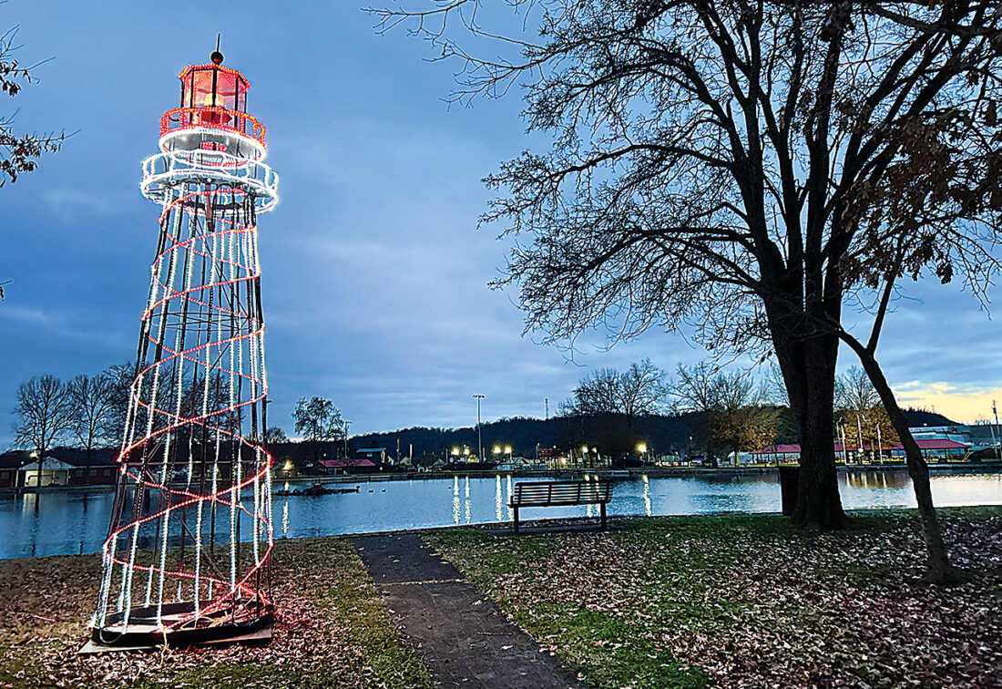 A lighthouse shines brightly near the pond in Parkersburg’s City Park early one evening recently. The structure is part of the holiday light display in the park. If you have a recent photo that showcases the spirit of the season in the Mid-Ohio Valley, submit it to Art Smith at asmith@newsandsentinel.com for possible inclusion on this page. See more photos at instagram.com/parkersburg.news.and.sentinel. (Photo by Art Smith)