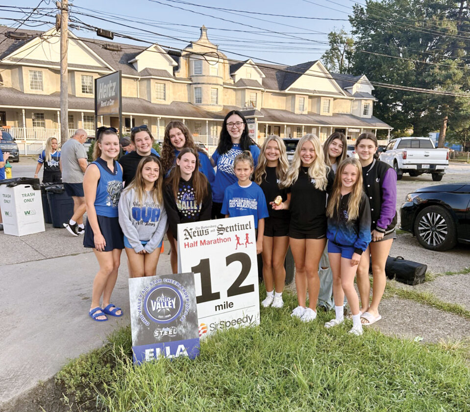 - Ava Branham, far left, helps at water station 12 during The Parkersburg News and Sentinel 2025 Half Marathon with her Ohio Valley All-Star cheer team. Branham said the group, named Cheerleeders for Charity, finds ways to give back to the community.