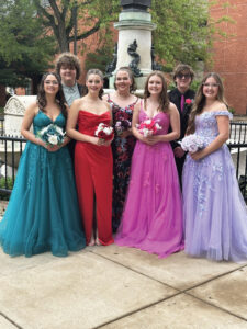 - Ava Branham, third from the right, poses for a picture before this year’s prom at Parkersburg South High School. Also pictured are Ansley Ubbens, Landon Henthorn, Ali Evans, Alivia Fritts, Lucas Karr and Lauren Powers. (Photo Provided)