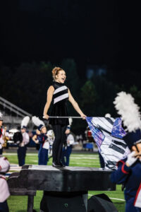 Ava Branham, as a member of the color guard, performs with the Parkersburg South High School marching band field show this past season. The group finished an historic year when it went undefeated in the 2025 season and earned grand champion honors at six West Virginia High School marching band competitions. (Photo Provided)