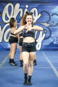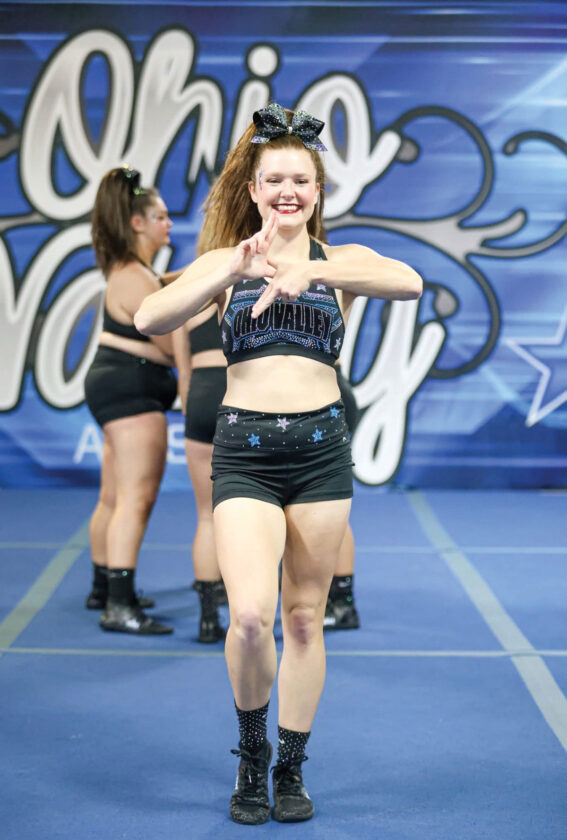 Ava Branham performs a routine with the Ohio Valley All-Star cheerleaders. Branham has been a member of the group for eight years and is on two of its competition teams. (Photo Provided)