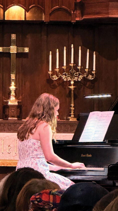 Ava Branham performs at a spring piano recital at the First Lutheran Church early this year. Branham said she has taken lessons from Stephanie Robinson since elementary school. (Photo Provided)