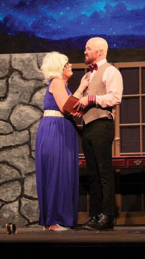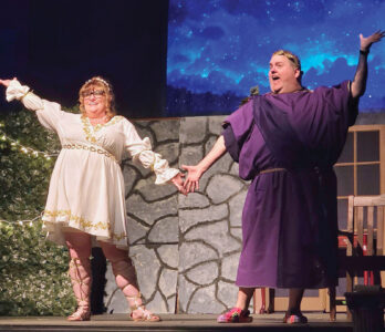 Amber Smrek-Kinker as Daphne and her husband, Sam Kinker as Ares, are together for the first time on the stage in “The Gods of Comedy” opening 7:30 p.m. today at the Mid-Ohio Valley Players in Marietta. (Photo Provided)