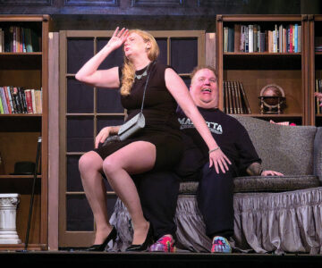 Dean Trickett played by Kat Biery and Ralph played by Tim Tuten in “The Gods of Comedy.” The show opens at 7:30 p.m. today at the Mid-Ohio Valley Players in Marietta and also will be presented next weekend. Tickets are $13. (Photo Provided)