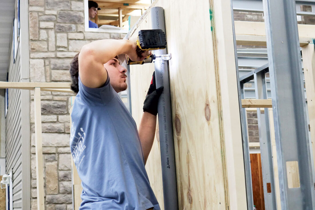 - Jake Stiers secures a piece of PVC conduit during his electricity class at the Washington County Career Center in September. (Photo Provided)