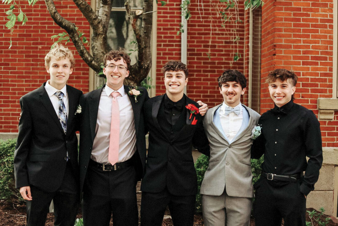 From left, Max Himmeldirk, Sam Miller, Ben Kelly, Jake Stiers, and Clay Perry pose for a picture for Warren High School’s senior prom in April. (Photo Provided)