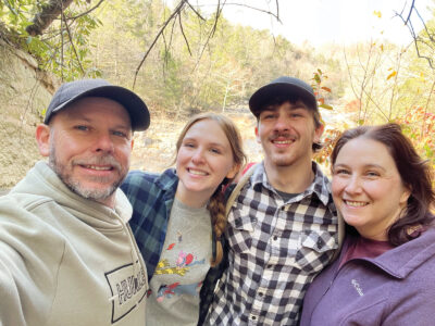 - John, Elaina, Jake, and Susan Stiers pose for a photo while on a hike at Audra State Park in November. (Photo Provided)