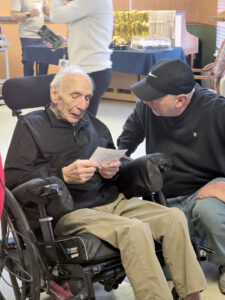 - From left, Ted Bauer looks over family photos alongside his grandson, Brad Bauer, during his 104th birthday celebration in Marietta on Tuesday. (Photo by Gwen Sour)