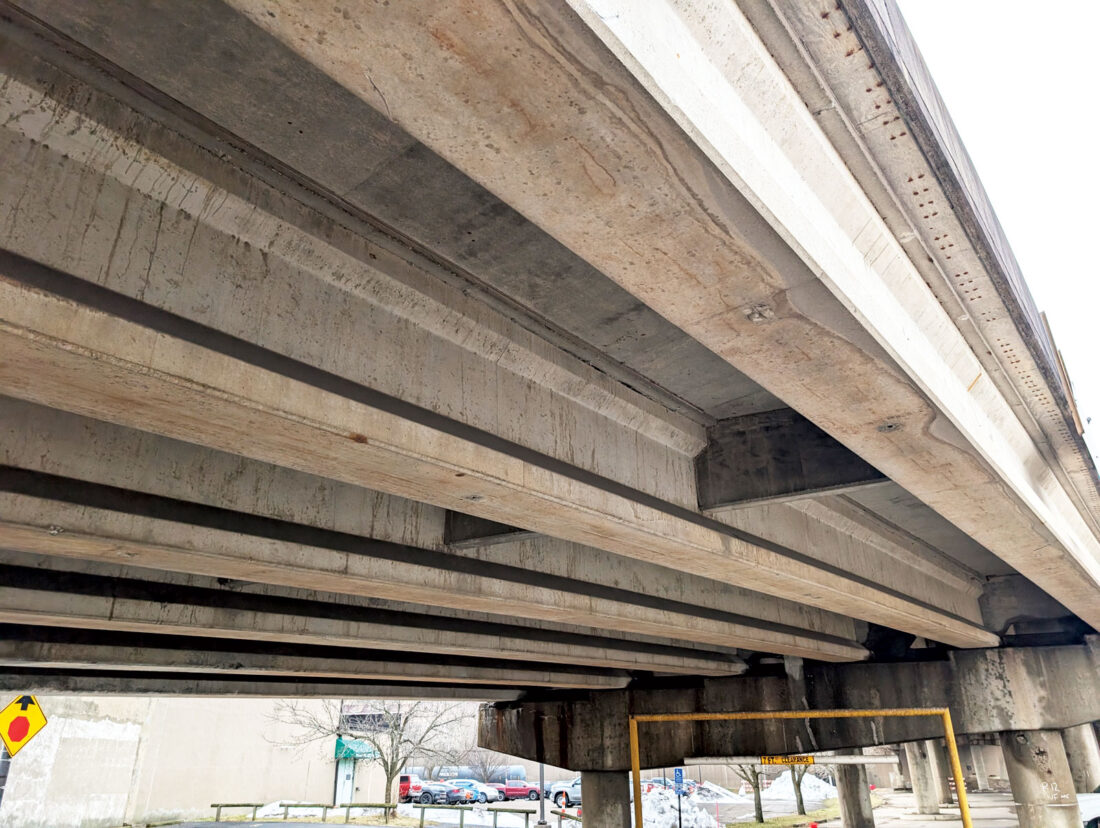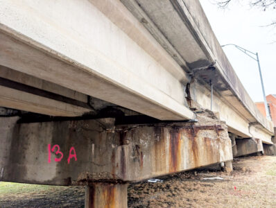 - Concrete girders like these beneath the ramps to and from the Juliana Street Bridge will be replaced with steel as part of a $17.5 million project set to get underway this year. (Photo by Evan Bevins)