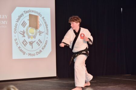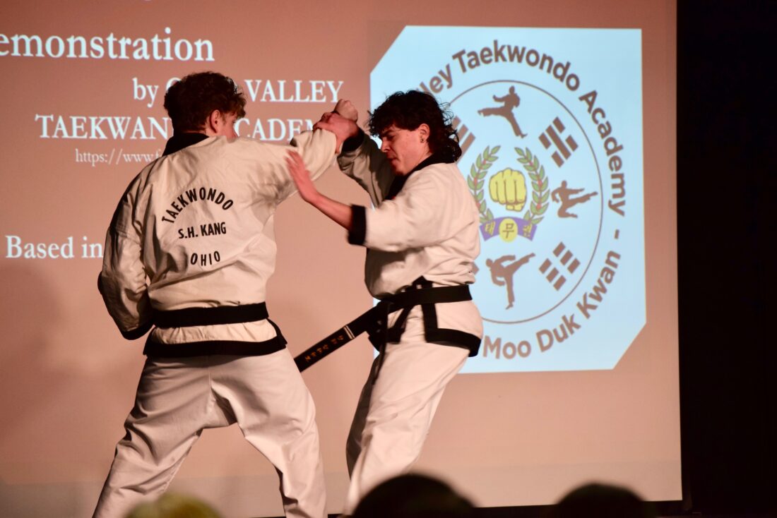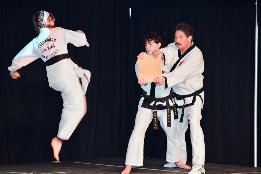 - Students with the Ohio Valley Taekwondo Academy perform a maneuver at Marietta College’s annual Multicultural Festival Saturday. (Photo by Amber Phipps)