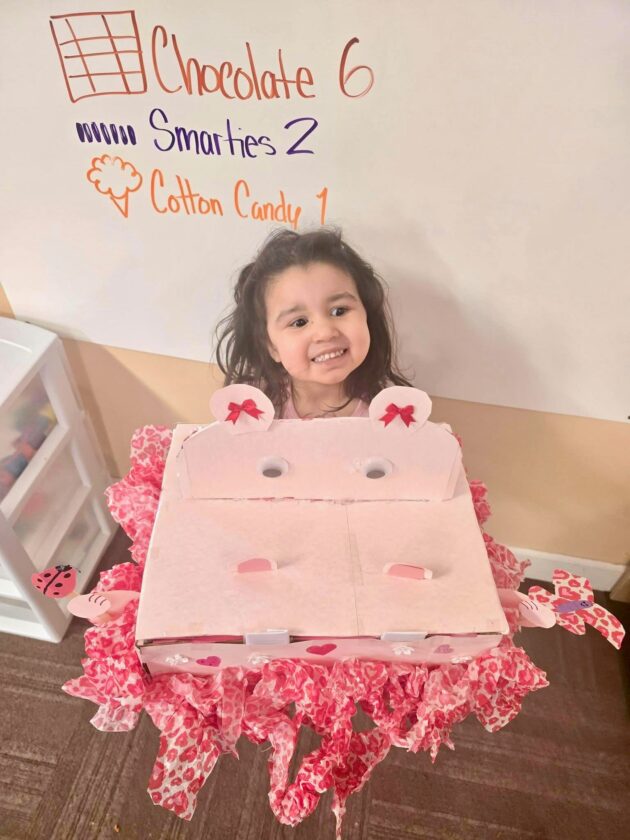 Kaari poses for a picture with her Valentine’s Day box created by Jackson Middle School seventh-grader Orion Evans for Olivia and Friends Childhood and Development Center.