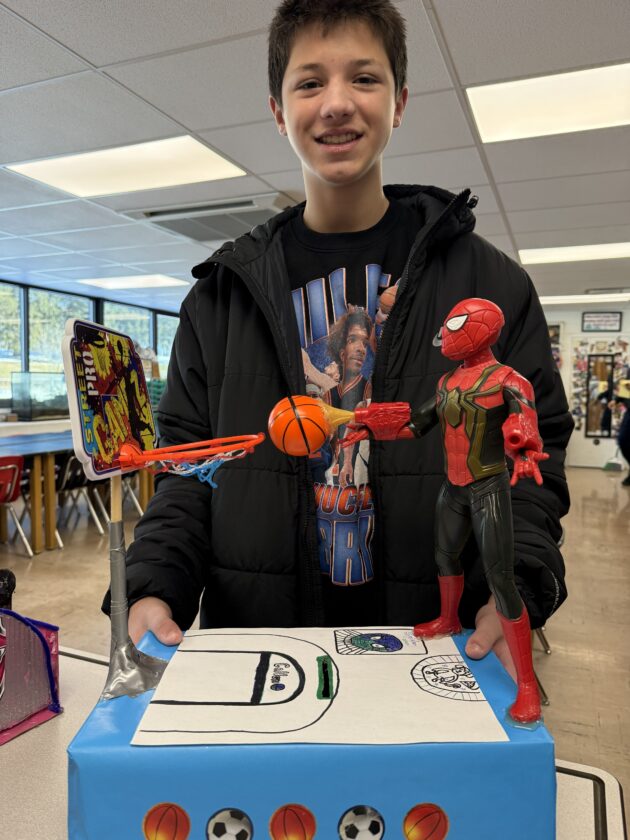 Jackson Middle School seventh-grader Julian Louden shows off his Spider-man themed Valentine’s Day box he made for daycare students at Olivia and Friends Childhood and Development Center.