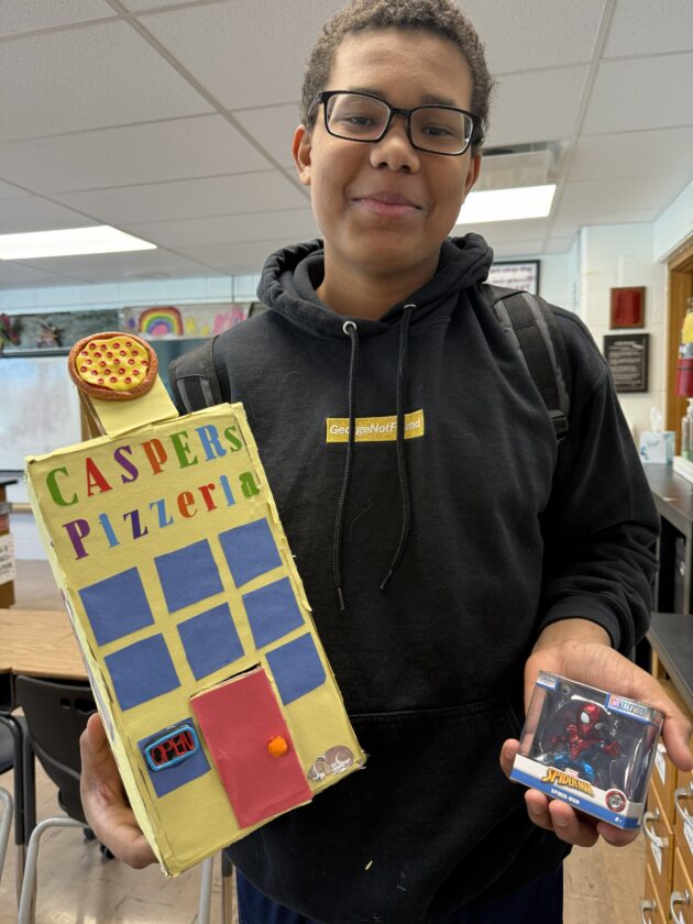 Photo provided Jackson Middle School seventh-grader Xaiden Moore created a Spider-man pizzeria themed Valentine’s Day box for younger kids at Olivia and Friends Childhood and Development Center.