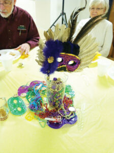 - Mardi Gras-themed decorations from the Fat Tuesday “Breakfast for Dinner” celebration at First Lutheran Church in 2020. Andrea Brock, president of the church council said the decorations would remain the same this year. (File Photo)