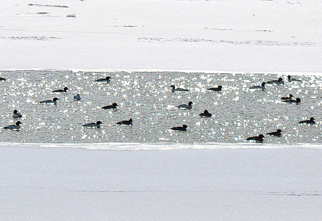 A gaggle of geese float in a section of the Ohio River free of ice during a sunny day recently near the confluence with the Muskingun River. (Photo by Art Smith)
