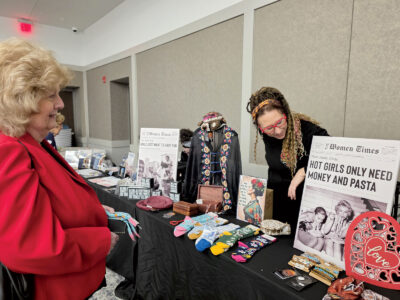 - From left, Robin Baylous peruses Cat Lang-Bigley’s wares during the Camden Clark Foundation’s Galentine’s Day Heart Luncheon on Friday. (Photo by Gwen Sour)