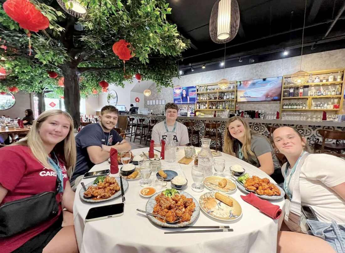 - Parker Burris eats dinner at the National FFA Washington Leadership Conference alongside the Cardington FFA Chapter on May 2, 2025. From left, Ava Davis, Chris Kinsey, Burris, Kallie Boley and Hannah Weiker. (Photo provided by Parker Burris)